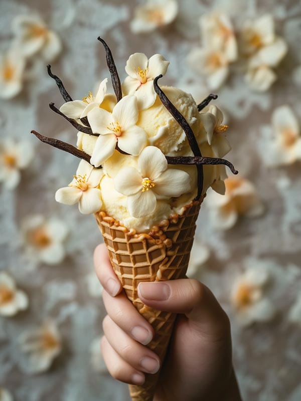 La glace vanille Bourbon est tout simplement une crème glacée à la vanille préparée avec de la vanille Bourbon, une variété de vanille d’exception originaire de l’océan Indien. Contrairement à ce que son nom pourrait laisser penser, la vanille Bourbon ne contient aucun alcool : le terme « Bourbon » vient de l’ancienne Île Bourbon (aujourd’hui La Réunion) où cette variété a été cultivée au XIXe siècle. Historiquement, la vanille elle-même provient du Mexique où les Aztèques l’utilisaient déjà, mais c’est un jeune esclave de 12 ans, Edmond Albius, féru de botanique et notamment des orchidées, qui découvrit en 1841 la méthode de pollinisation manuelle permettant de la cultiver à La Réunion puis à Madagascar. Grâce à ce savoir-faire, Madagascar est devenu le premier producteur mondial de vanille, notamment de la variété Bourbon. Saviez-vous qu’en reconnaissance envers l’esclave affranchi, une liane de vanille orne le blason de l’île de La Réunion ?