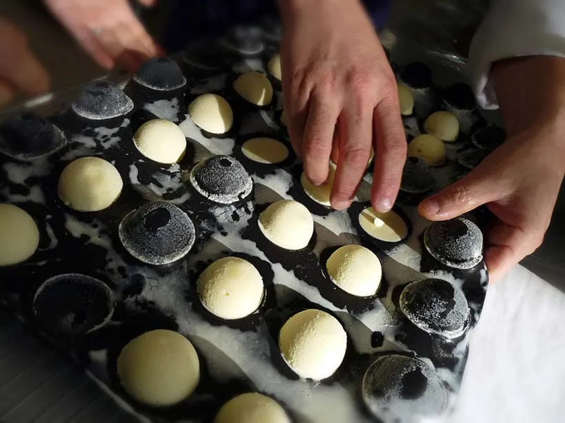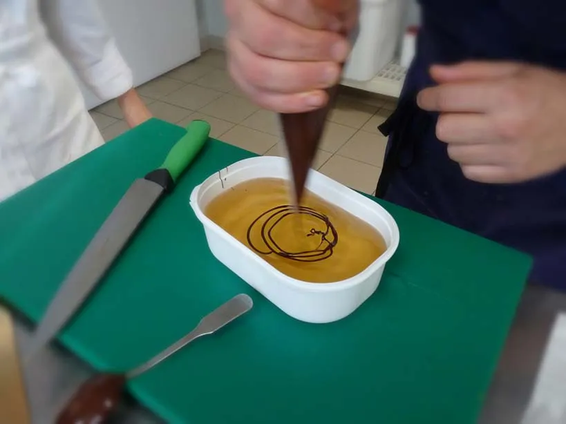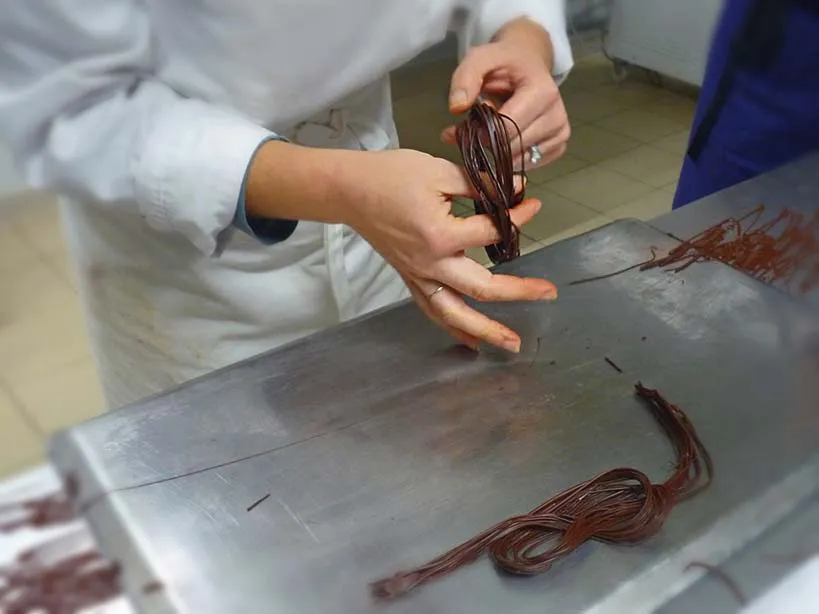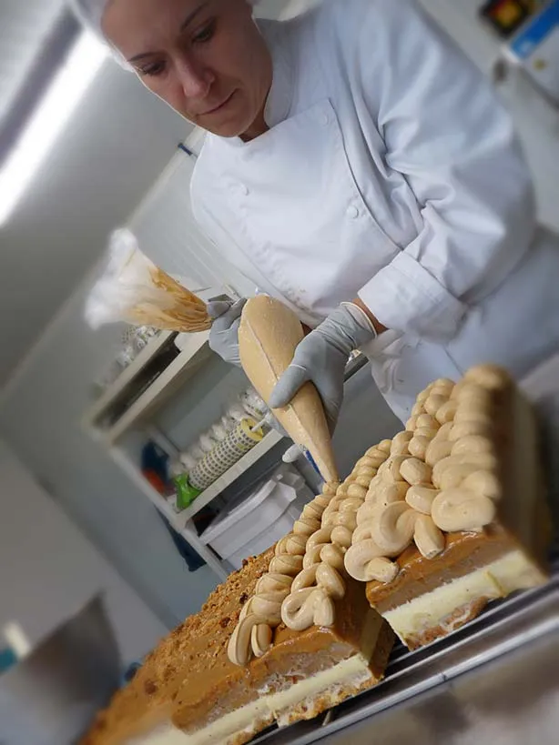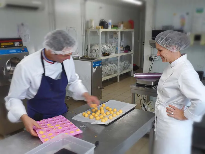 Afin de rassasier gourmandes et gourmands avec d’incroyables desserts pour vos tables de réveillon, Mathilde et Luc s’affairent au labo. Pour les décorations givrées ou en chocolat, Luc Debove, Maître glacier très attaché à l’excellence de tout ce qu’il travaille transmet son savoir-faire artistique. Mathilde, en artiste-glacière passionnée reproduit les gestes avec élégance et habileté !